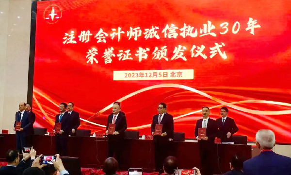 开幕会为首批“注册会计师诚信执业30年”代表颁发了荣誉证书,全国共有127人获得该荣誉证书。朱建弟校友、周琪校友、邢建良校友等获颁“注册会计师诚信执业30年”荣誉证书。