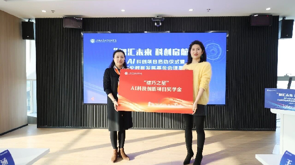 会上,举行了“建巧之星”AI科技创新项目奖学金捐赠仪式。该奖学金由2013届校友、基金会理事、七巧时代科技(香港)有限公司董事长王建巧捐赠设立,扶持综合表现突出、具备引领性的AI项目与具有创新点和成长潜力的AI项目。