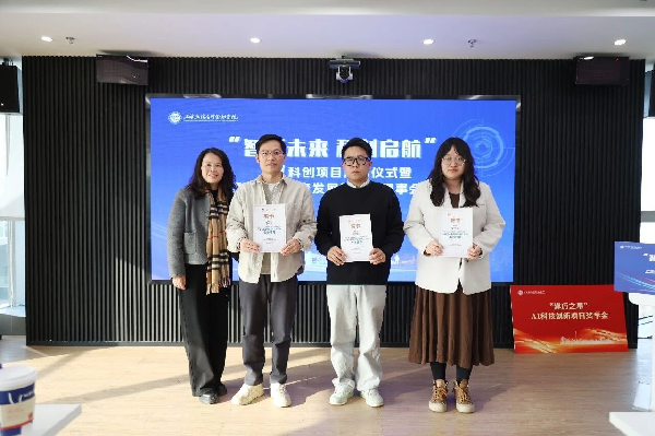 创新创业学院院长邓娜为2013届校友、智期科技创始合伙人兼CFO马文杰,2019届校友、上海宝山技术转移有限公司总经理宋易欣,2020届校友、AI产品经理荣书浛颁发创新创业导师聘书。三位校友代表分享了行业经验与创业感悟,为学子们的科创之路提供了宝贵指引。