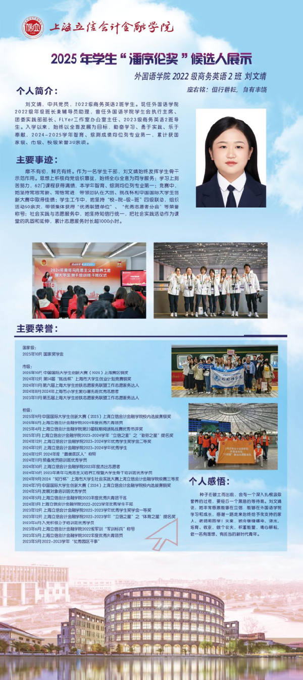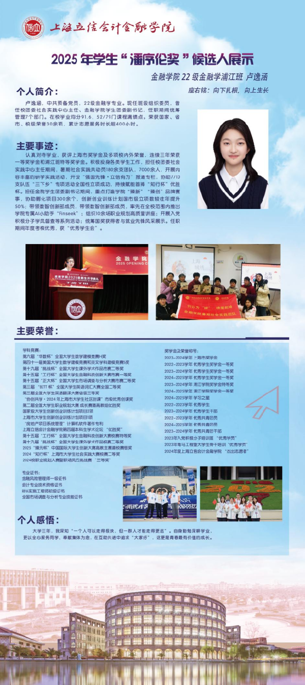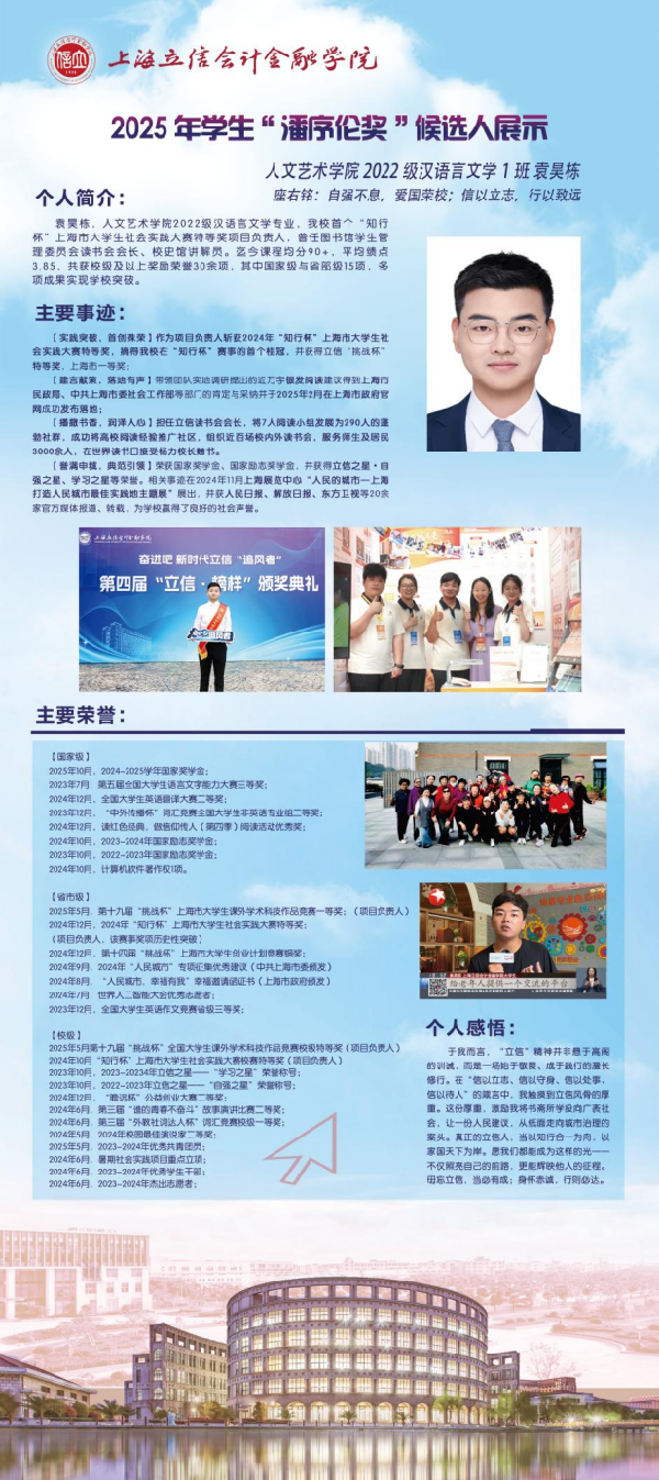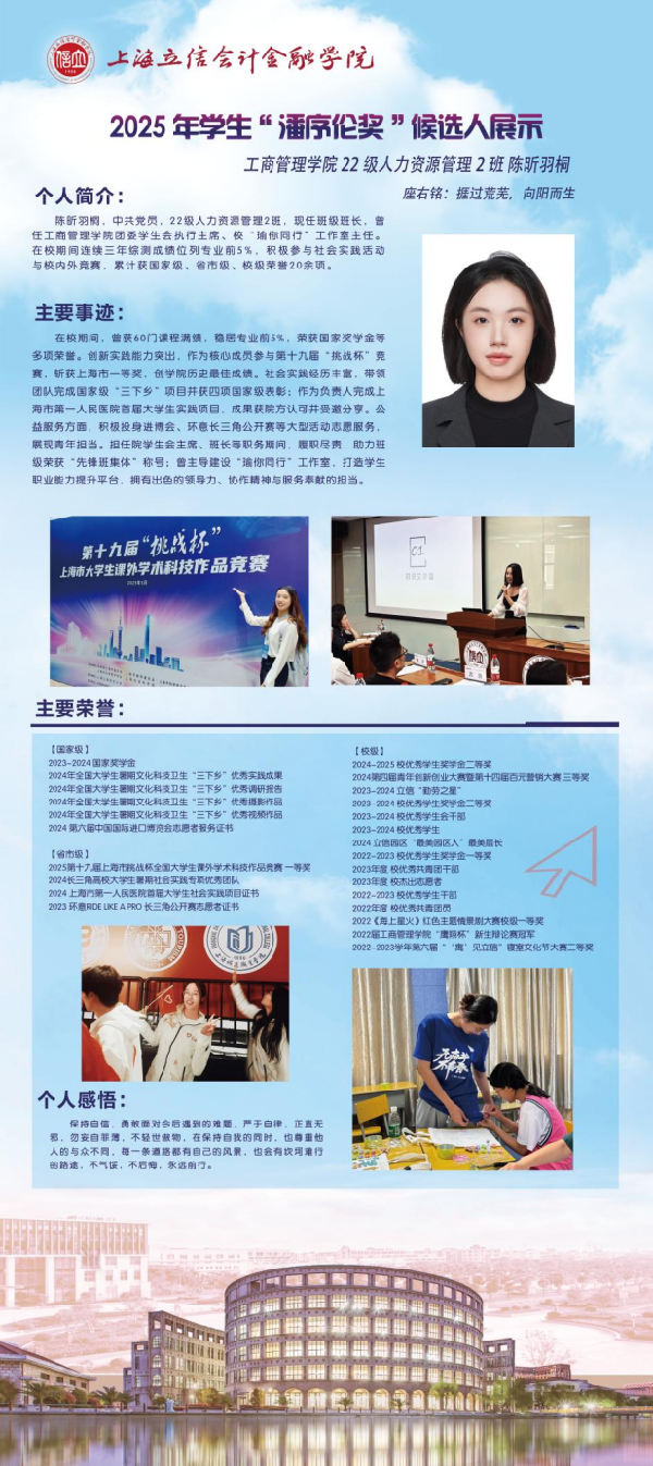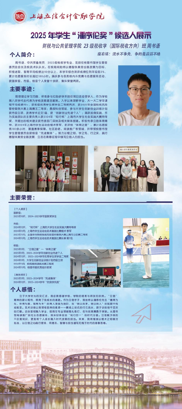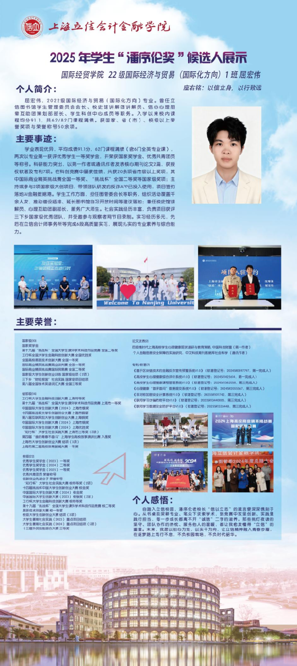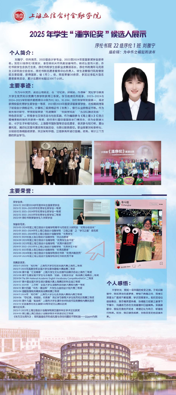 青春逐梦,笃行致远。现在,让我们共同见证这10位优秀立信学子的风采吧!